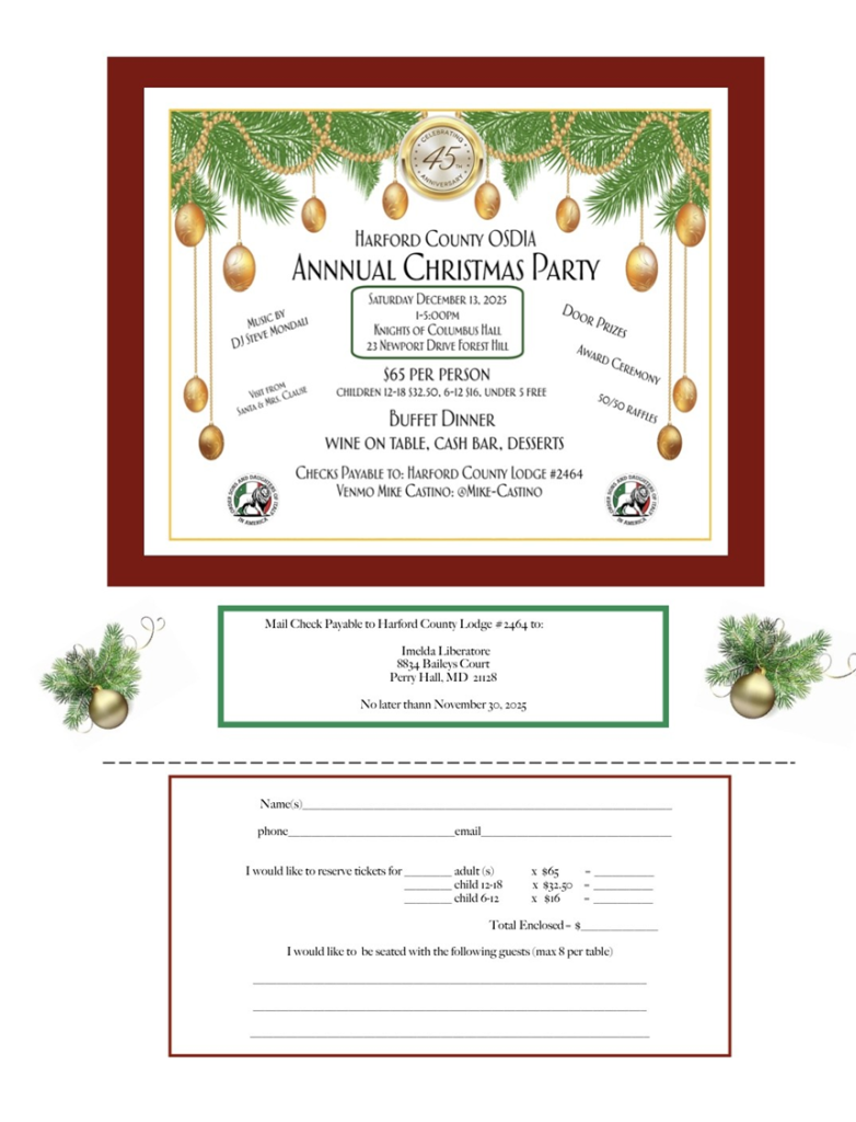 Where: Knights of Columbus Hall, 23 Newport Drive, Forest Hill, MD